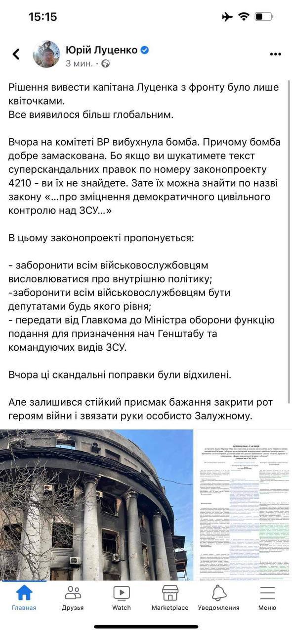 Колишній генпрокурор України, а нині капітан ЗСУ Юрій Луценко заявляє про спробу влади "закрити рота героям війни і зв'язати руки особисто Залужному".