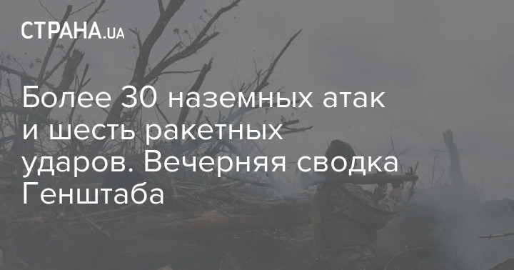 ЗСУ за минулу добу відбили понад 30 атак росіян. По українських містах було завдано шість ракетних ударів.