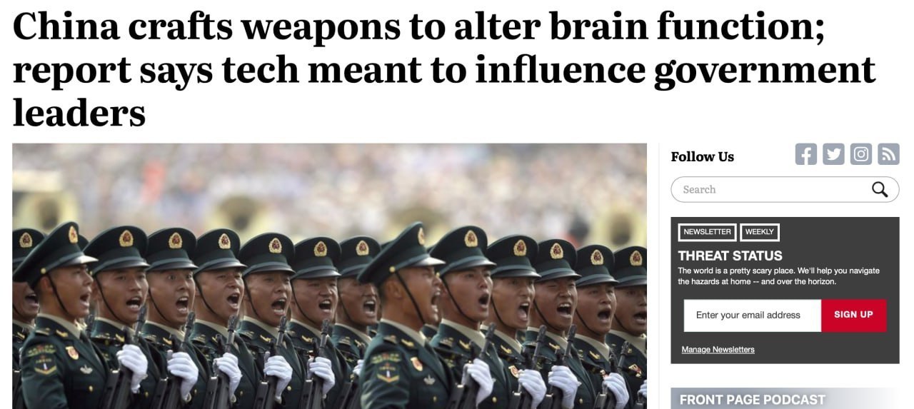 Американське видання опублікувало звіт, в якому йдеться про створення фахівцями китайської армії спеціальної "нейроударної" зброї.