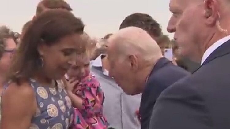 Судячи з відео в мережі, він підійшов близько до малюка в кольоровому сарафані, яку на руках тримала жінка, і вдав, що кусає її. Дитина почала ухилятися від Байдена і скривилася. Мама спробувала зняти знайомство з президентом США на відео, але побачивши реакцію доньки, перевела все жартома.