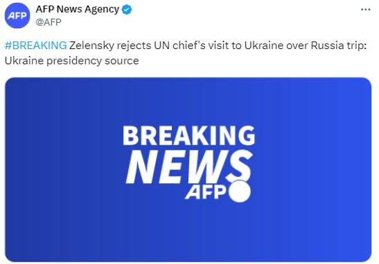 Володимир Зеленський відмовив генеральному секретарю ООН Антоніу Гутеррішу у візиті до України через те, що той відвідав саміт БРІКС у Росії.