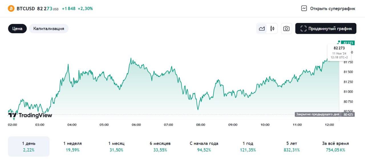 Курс біткоїну зростає зараз дуже швидкими темпами. Якщо наприкінці минулого тижня він досяг $80 тисяч, то новий почав із подорожчання до $83 тисяч.