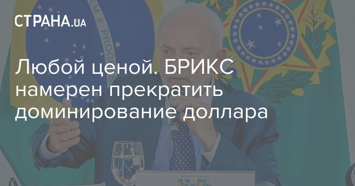 Президент Бразилії Луїс Інасіу Лула да Сілва заявив, що економічний блок БРІКС сповнений рішучості покласти край домінуванню долара США за будь-яку ціну.