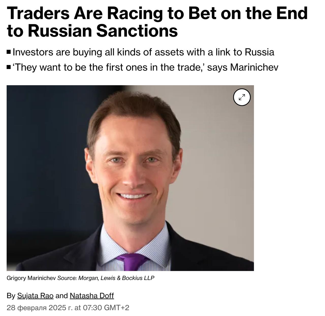 Американський юрист із цінних паперів Григорій Мариничев каже, що клієнти з усього світу запитують його, як торгувати на російських ринках, але через США це зробити не можна через чинні санкції.
