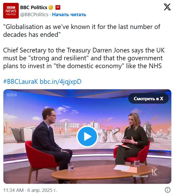 У Британії заявили, що епоха глобалізації "добігла кінця" через тарифи Трампа