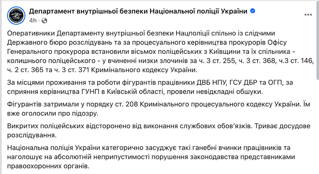 Департамент внутрішньої безпеки Нацполіції вже підтвердив інформацію, не називаючи прізвищ.