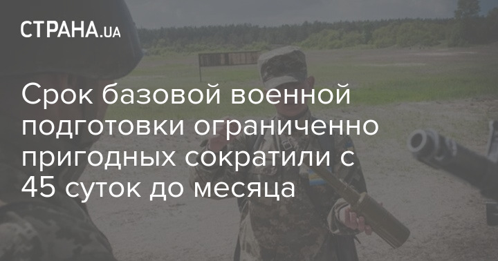 У Збройних силах України оновили програму базової загальної військової підготовки. Відповідно до нових змін, з 45 діб до місяця скорочується термін базової військової підготовки обмежено придатних.