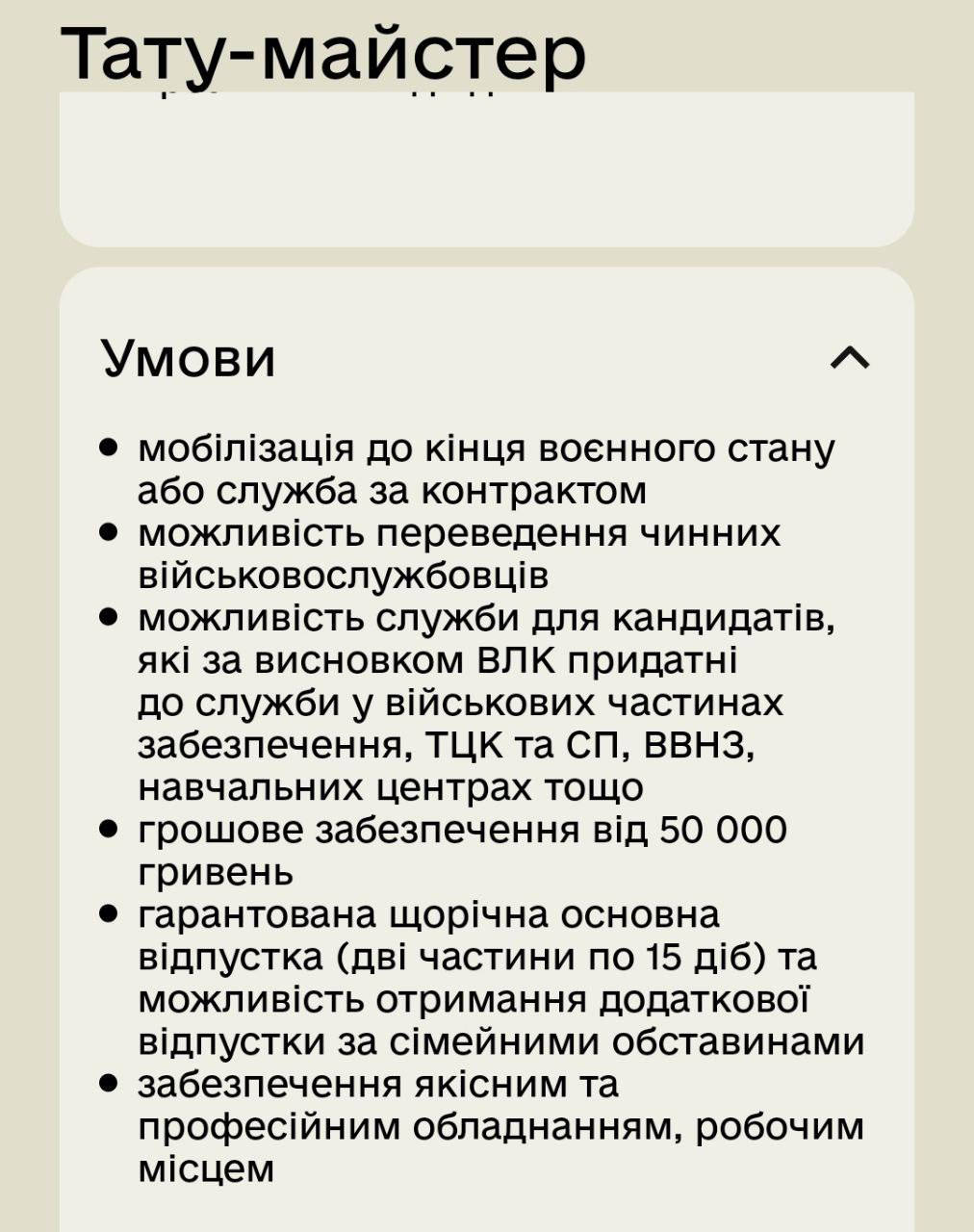Оголошення про пошук такого фахівця було розміщено 17 квітня на сайті "Резерв+" у розділі вакансій у Силах оборони України.