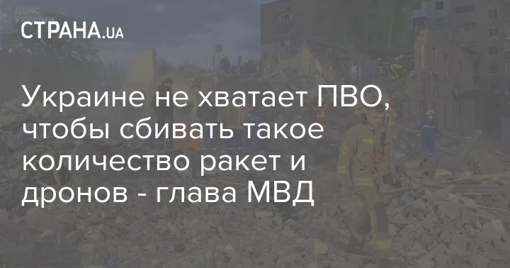 Україні не вистачає ППО, щоб збивати таку кількість ракет та дронів. Про це заявив голова МВС Ігор Клименко в ефірі "Радіо Свобода".