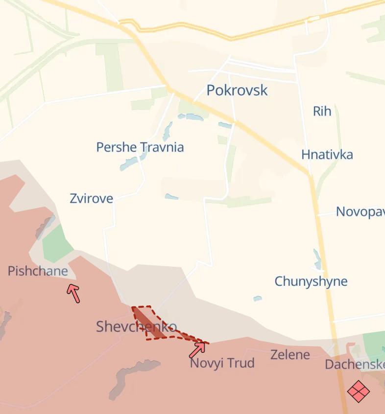 Крім того, противник повернув собі контроль над частиною села Шевченка на південь від Покровська, де нещодавно контратакували українські війська.