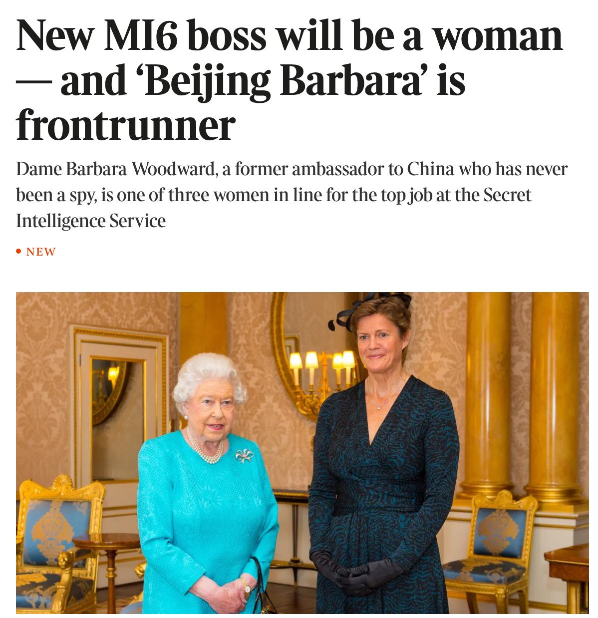 Його місце вперше в історії британської розвідки може посісти жінка, пише видання. Головний кандидат – колишній посол Британії у Китаї Барбара Вудворд. Ще два претенденти – жінки-офіцери МІ-6, чиї імена не розголошуються.