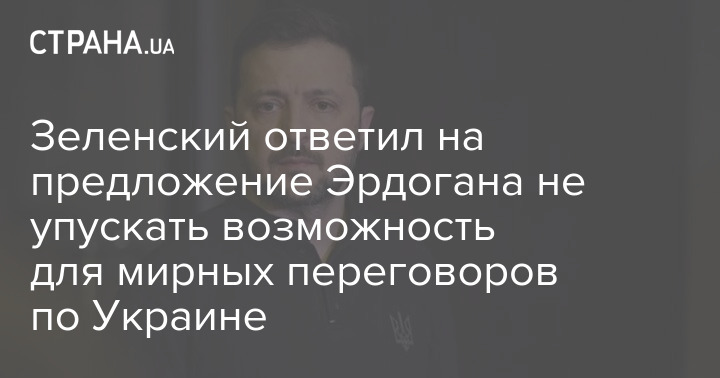 Президент Туреччини Реджеп Тайіп Ердоган заявив українському президенту Володимиру Зеленському, що не можна упускати можливість для мирних переговорів щодо України.