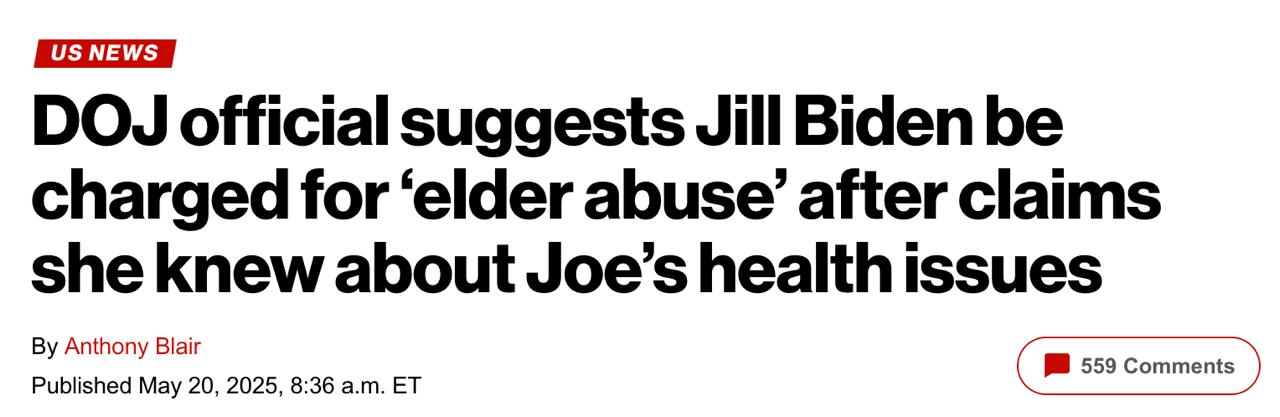 Тим часом у Мін'юсті США запропонували пред'явити колишній першій леді Джилл Байден кримінальні звинувачення у жорстокому поводженні з людьми похилого віку через рак її чоловіка, передає New York Post.