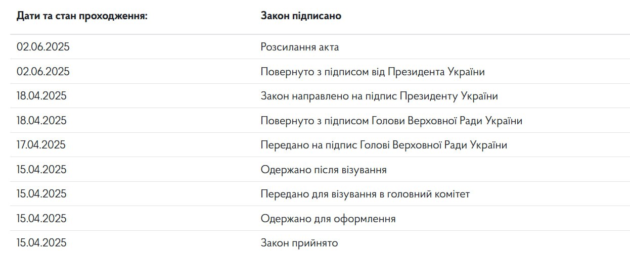 Про це повідомляється у картці документа на сайті Верховної Ради.
