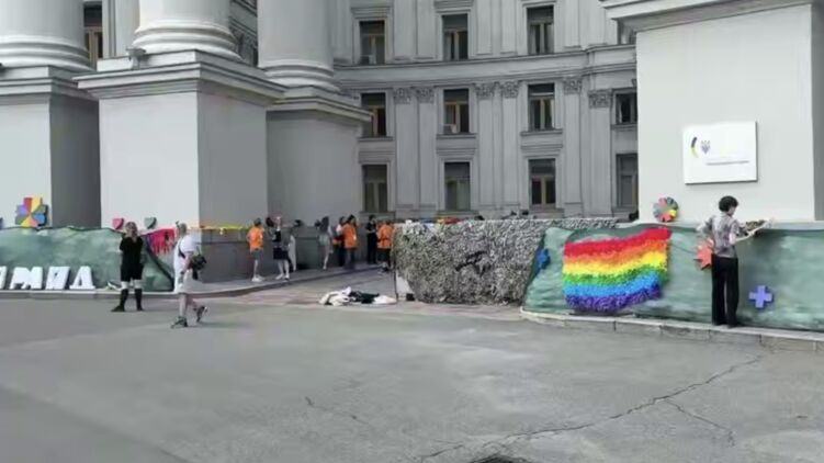Учасники маршу на захист прав ЛГБТ почали збиратися біля будівлі Міністерства закордонних справ України. Акція ЛГБТ у Києві розпочалася.