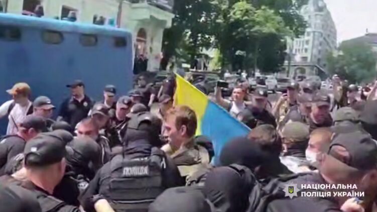 Поліція опублікувала відео сутички із противниками ЛГБТ у Києві, під час якої ветерану зламали протез