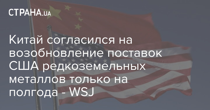 Китай погодився на відновлення постачання США рідкісноземельних металів лише на пів року, залишаючи за собою важіль впливу на випадок нової торгової напруги.