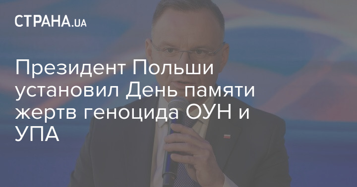 Президент Польщі, що йде, Анджей Дуда підписав закон, який оголошує 11 липня Днем пам'яті про жертв геноциду, скоєного ОУН і УПА в роки Другої світової війни.