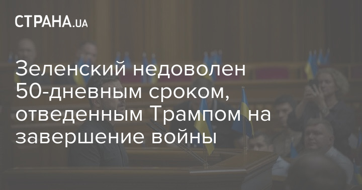 Володимир Зеленський незадоволений терміном 50 днів, який президент США Дональд Трамп дав голові Кремля Володимиру Путіну для завершення війни в Україні. Він вважає його занадто великим.