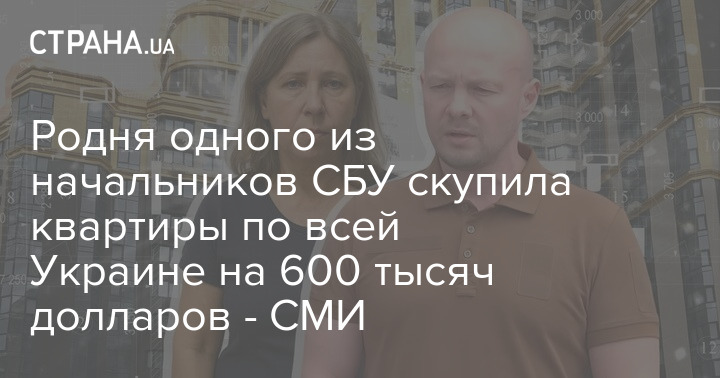 Родня одного з начальників СБУ скупила квартири по всій Україні на 600 тисяч доларів