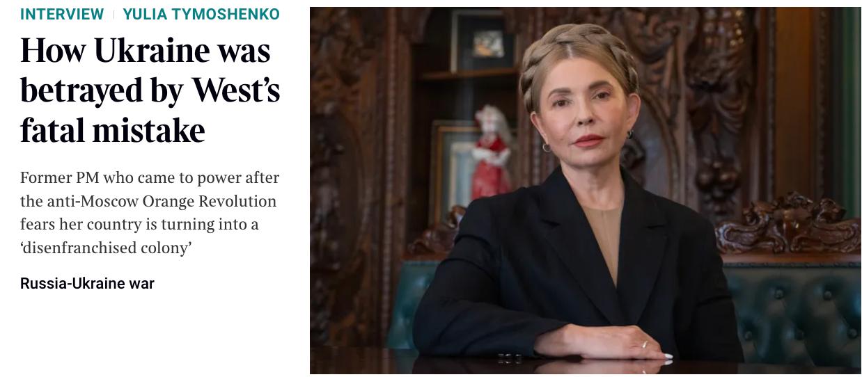 "З початку повномасштабного вторгнення Росії західні країни - під загрозою призупинення надання кредитів - нав'язали неприйнятний контроль над державними інститутами України, державними банками та монополіями, підриваючи суверенітет країни. Це жорстоко та несправедливо щодо нації, яка перебуває у стані війни", - сказала Тимошенко.