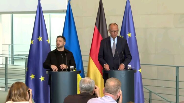 Також до преси вийшли Зеленський та канцлер ФРН Фрідріх Мерц.