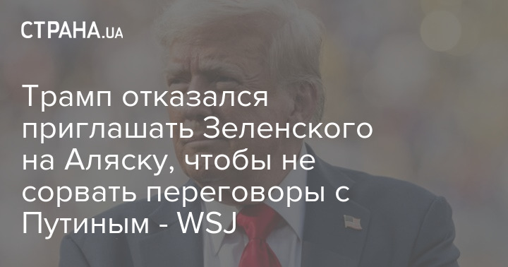 Глава Білого дому Дональд Трамп відмовився запрошувати президента України Володимира Зеленського на Аляску, щоб не зірвати переговори з російським лідером Володимиром Путіним.