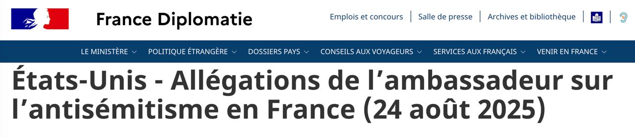 У відповідь МЗС Франції опублікувало заяву про те, що "прийняло до відома звинувачення" посла, але заперечує їх. Відомство також визнало, що "зростання числа антисемітських проявів у Франції з 7 жовтня 2023 року - це реальність, яку ми засуджуємо і проти якої французька влада демонструє повну мобілізацію".