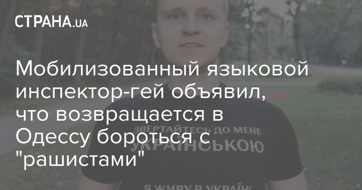Мобілізований мовний інспектор-гей оголосив, що повертається до Одеси боротися із "рашистами"