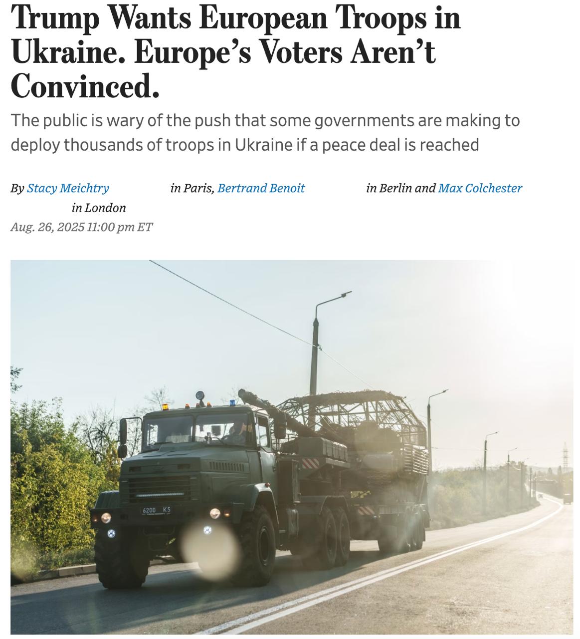Європейські чиновники визнають, що важко переконати суспільство без чіткої заяви, що європейські війська діятимуть за підтримки США. Але незважаючи на активну дипломатію останніх тижнів, "досі немає ясності, яку саме роль готові взяти на себе США".