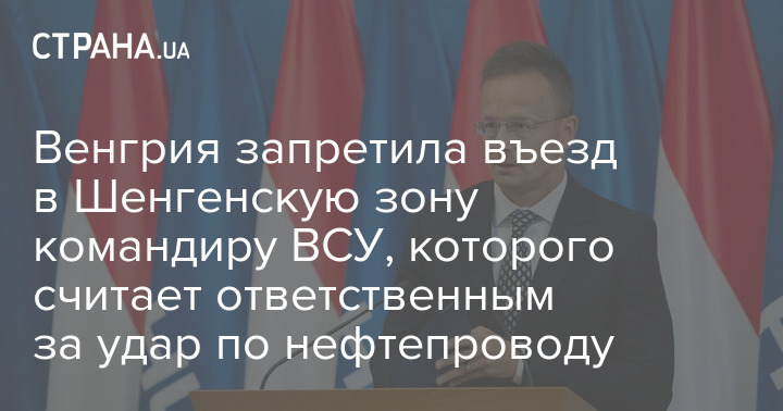 Угорщина заявляє, що заборонила в'їзд до Шенгенської зони командиру ЗСУ, якого вважає відповідальним за удар по нафтопроводум "Дружба".