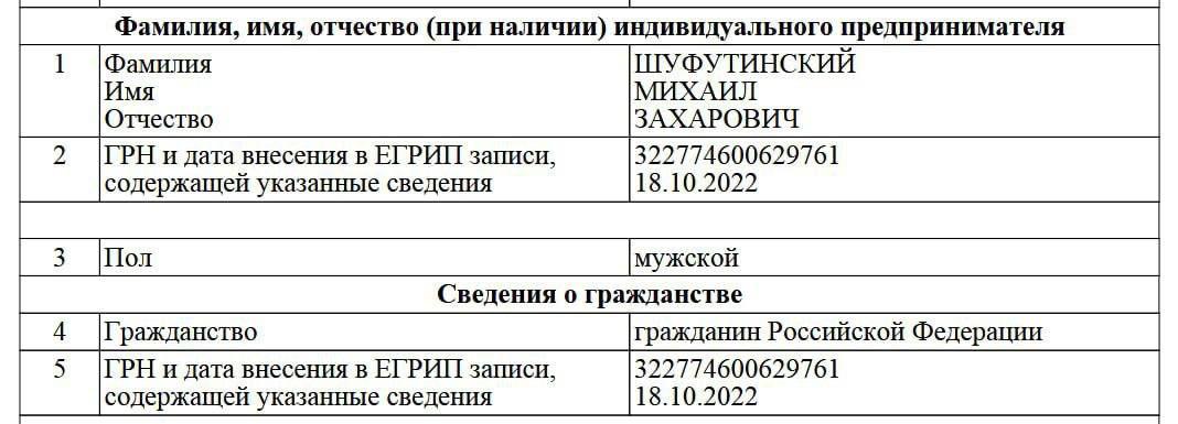 Про це повідомляють російські телеграм-канали з посиланням на витяг з податкової служби.