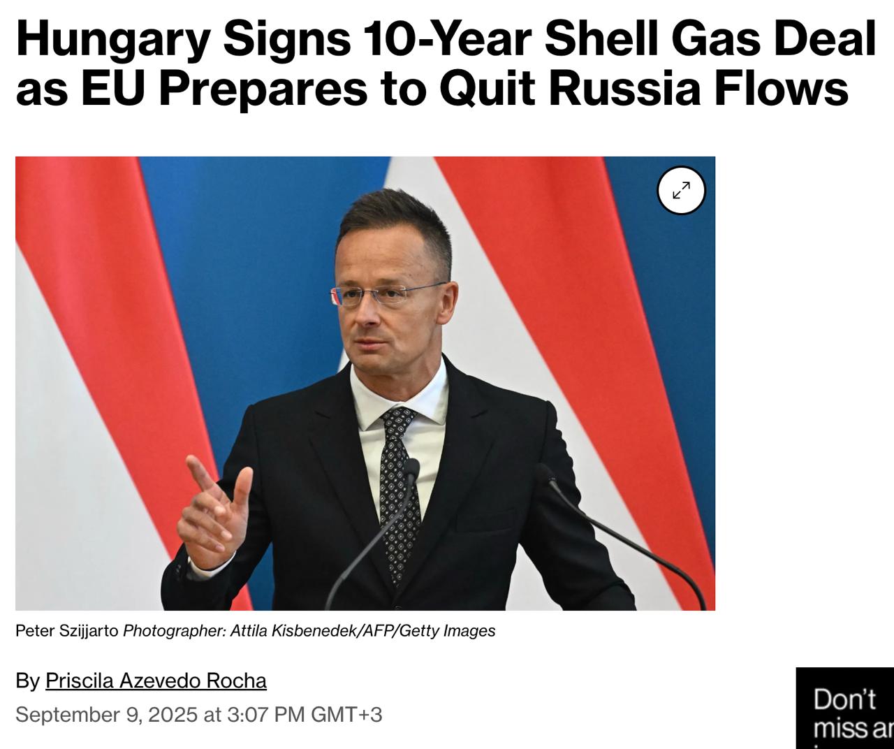 Угорщина підписала 10-річну газову угоду із європейською компанією Shell, повідомляє Bloomberg.
