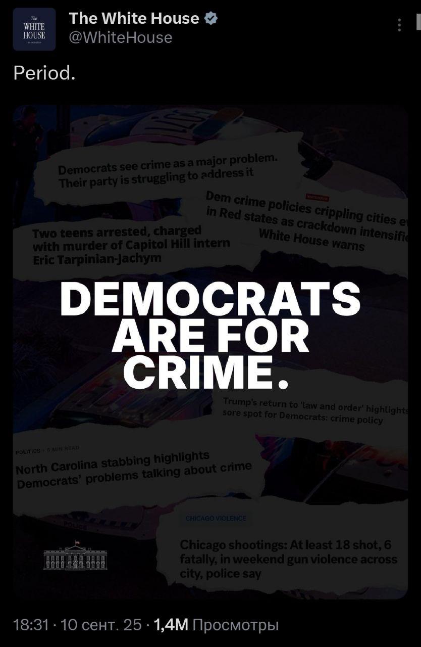 "Демократи - за злочинність", - пост із таким твердженням опублікували соцмережі американської адміністрації.