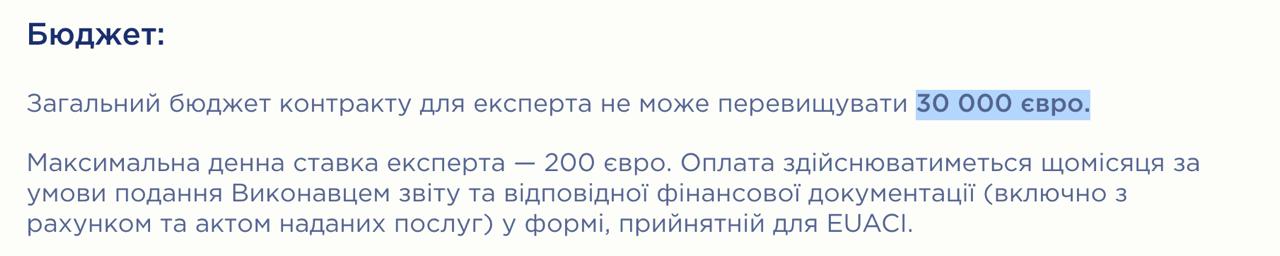 За контракт на півроку потенційному радникові пропонують 30 тисяч євро. Максимальна добова ставка становить 200 євро.