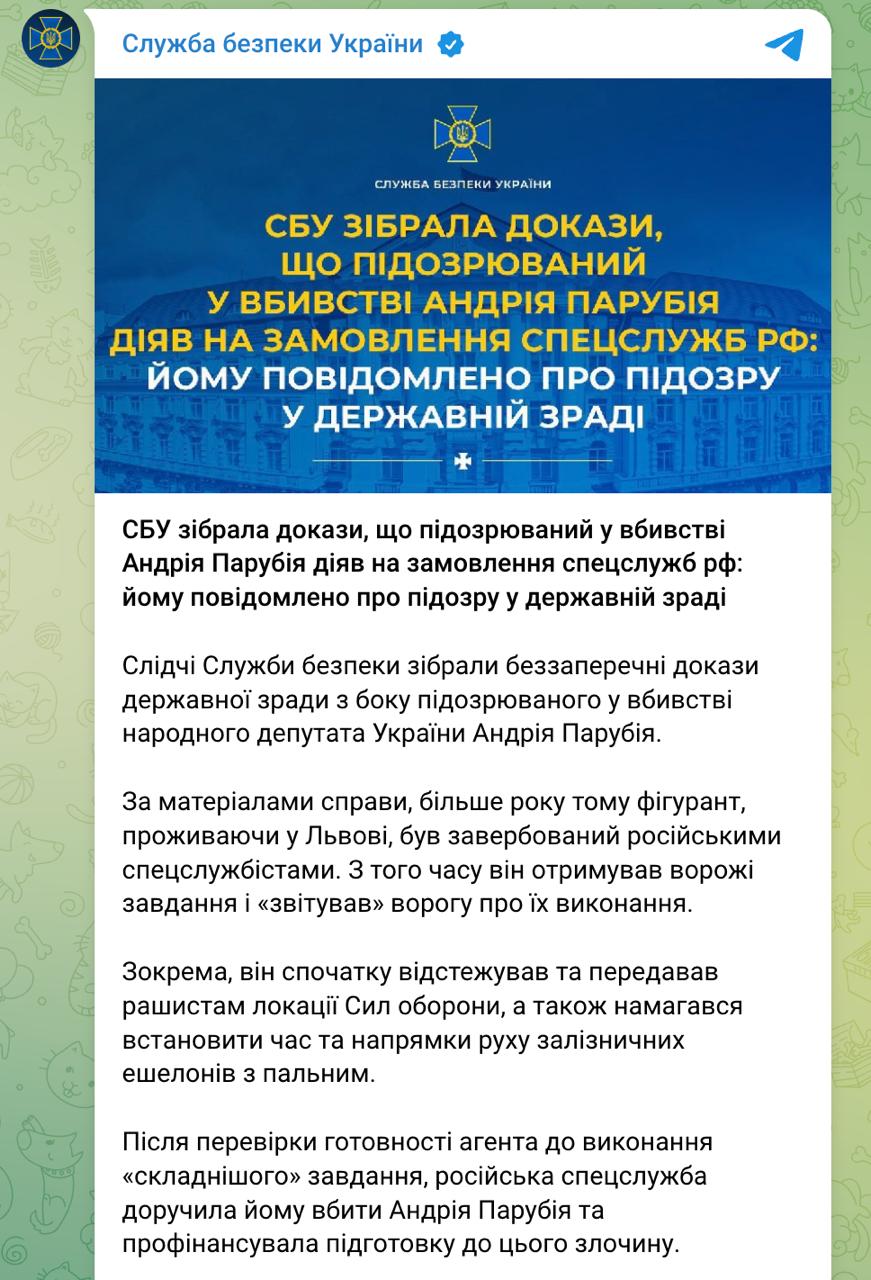 Нагадаємо, сам зловмисник заявляв, що вбив Парубія, щоб "помстити українській владі" за смерть сина під Бахмутом у 2023 році.