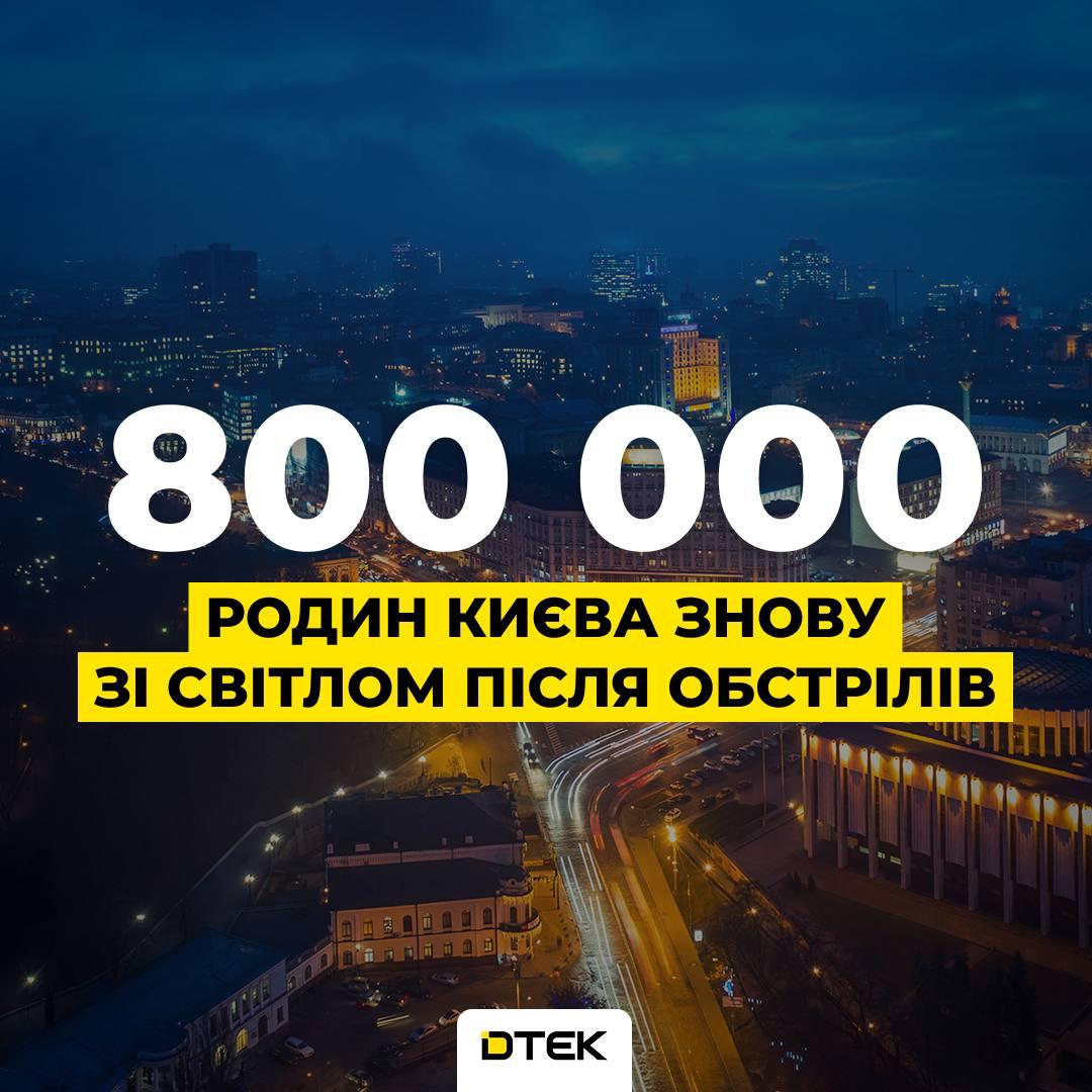 У ДПЕК повідомили, що основні роботи завершено, і світло повернулося до більшості жителів столиці. Але залишаються окремі локальні аварії, які ще не усунуто.