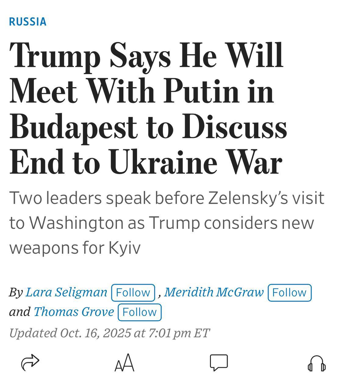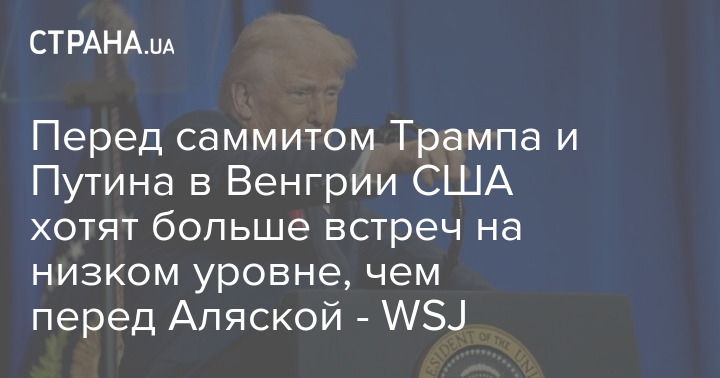 США, перед самітом Трампа та Путіна в Угорщині, хочуть більше зустрічей на низькому рівні, ніж перед Аляською - WSJ