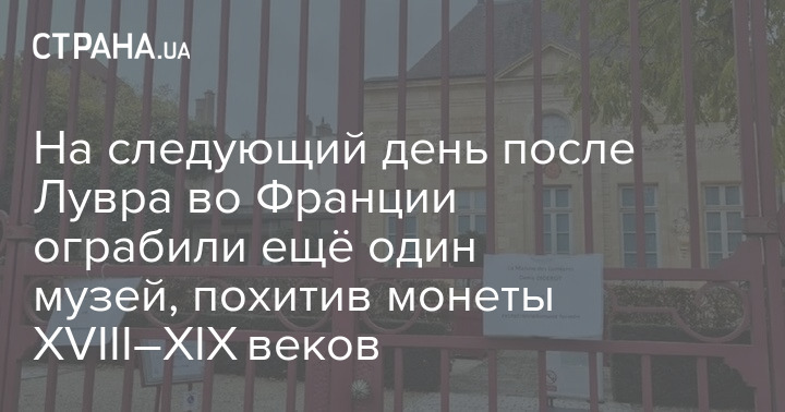 Наступного дня після Лувру у Франції пограбували ще один музей, викравши монети XVIII–XIX століть
