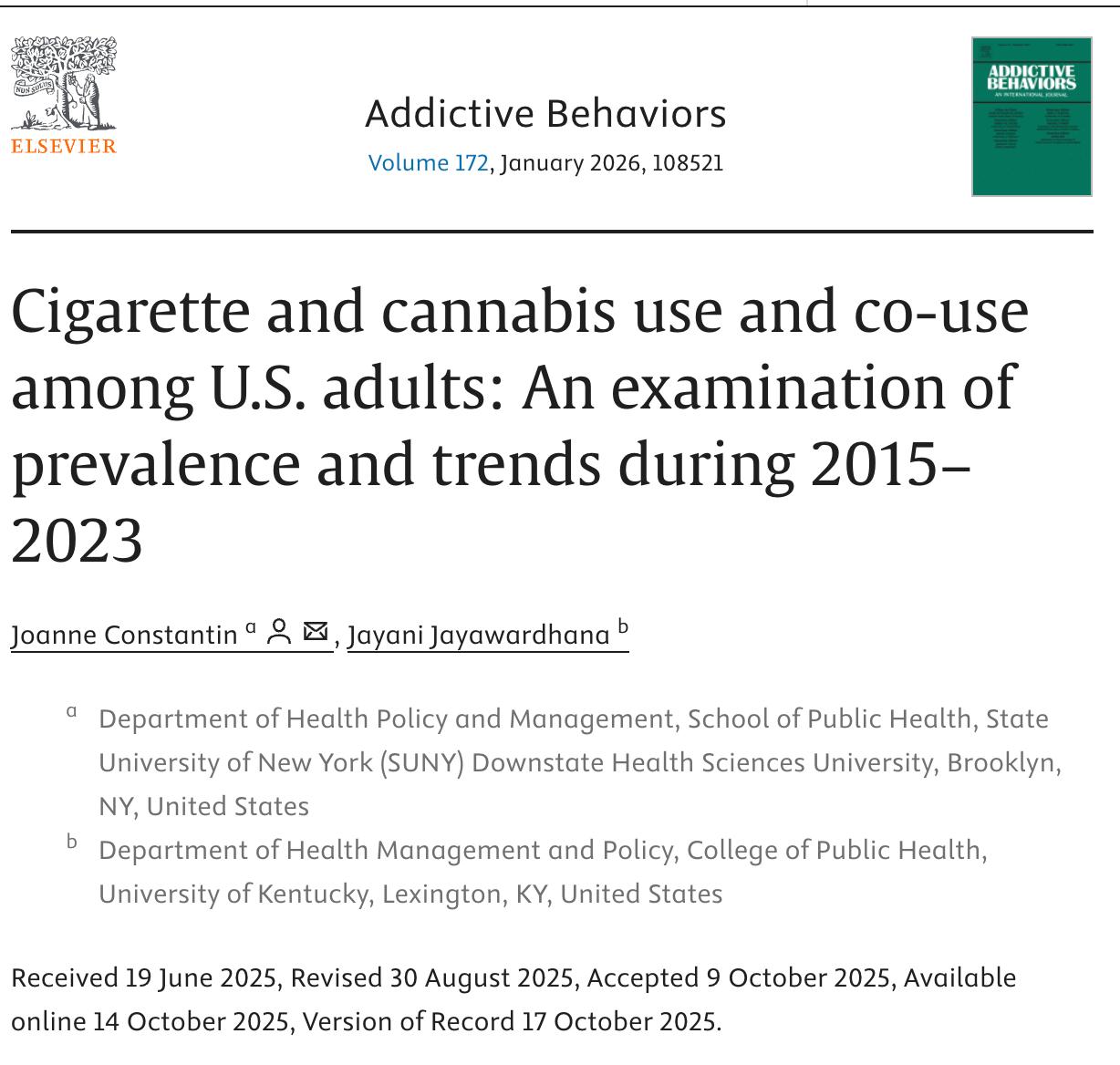 Згідно з їхніми даними, частка людей, які курять лише канабіс, до 2023 року збільшилася до 10,6%, а тих, хто палить лише цигарки, знизилася до 8,8%.