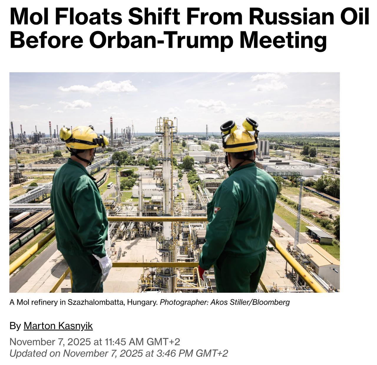 У статті наголошується, що заява угорського нафтового гіганта стала важливим сигналом зміни позиції після багатомісячної риторики Орбана про те, що Угорщина не має альтернативи Росії в енергетиці. І, як очікується, на зустрічі з Трампом він попросить відстрочки для Угорщини щодо застосування антиросійських санкцій.