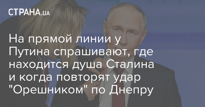 На прямій лінії у Путіна питають, де перебуває душа Сталіна і коли повторять удар "Горішником" по Дніпру