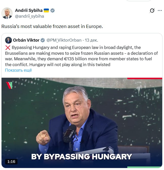 Прем'єр-міністр Угорщини опублікував першу посаду про заморожені активи РФ.