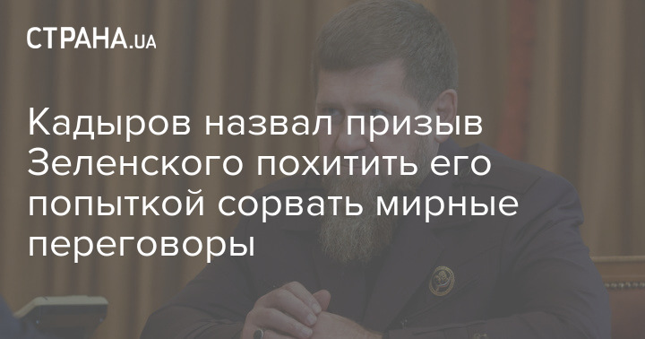 Глава Чечні Рамзан Кадиров вважає, що заклик Володимира Зеленського до американців викрасти його, як вони вчинили з Ніколасом Мадуро, підтверджує спроби української влади "зірвати мирне врегулювання".