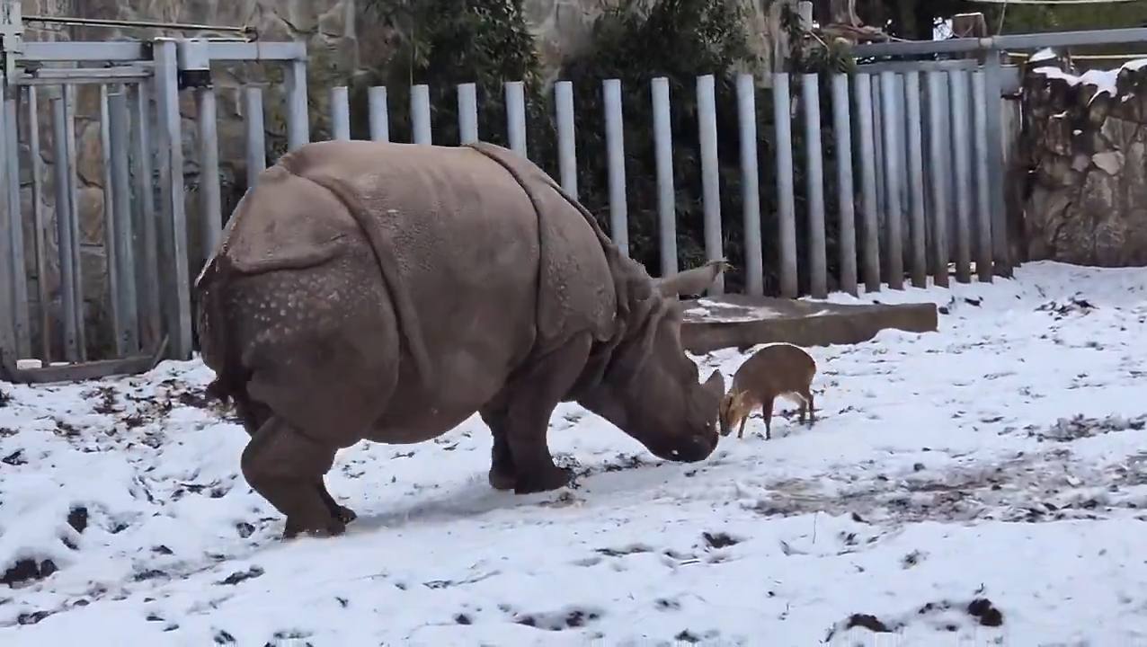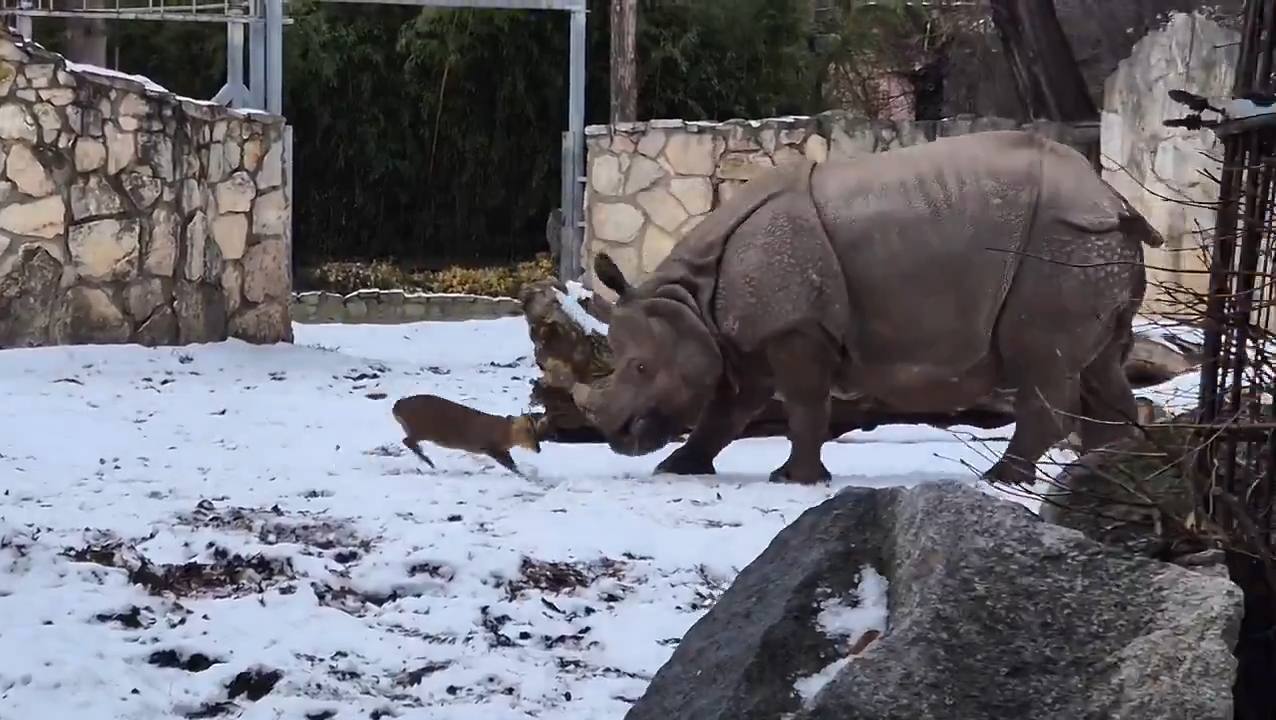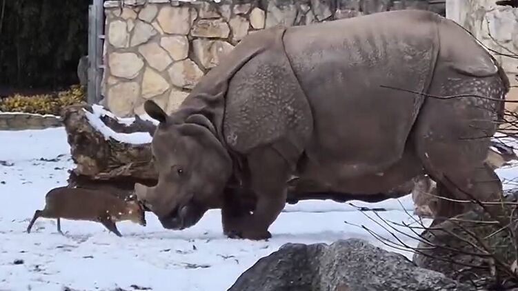Вроцлавський зоопарк став ареною поєдинку карликового оленя та носорога. Кадр із відео