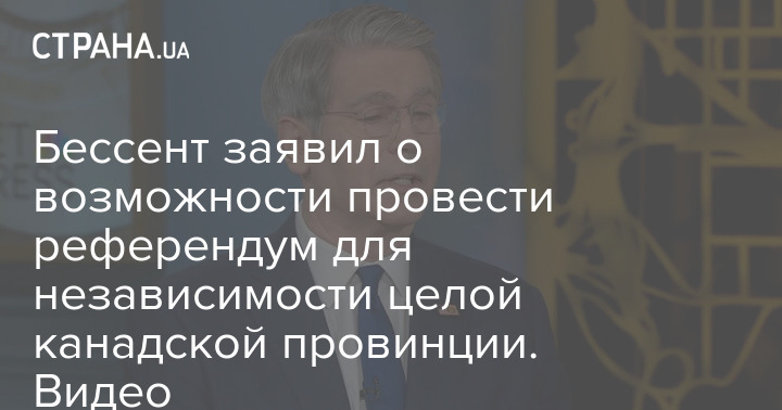 Бессент заявив про можливість провести референдум для незалежності цілої канадської провінції. Відео