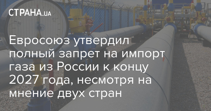 Євросоюз затвердив повну заборону на імпорт газу з Росії до кінця 2027 року, незважаючи на думку двох країн