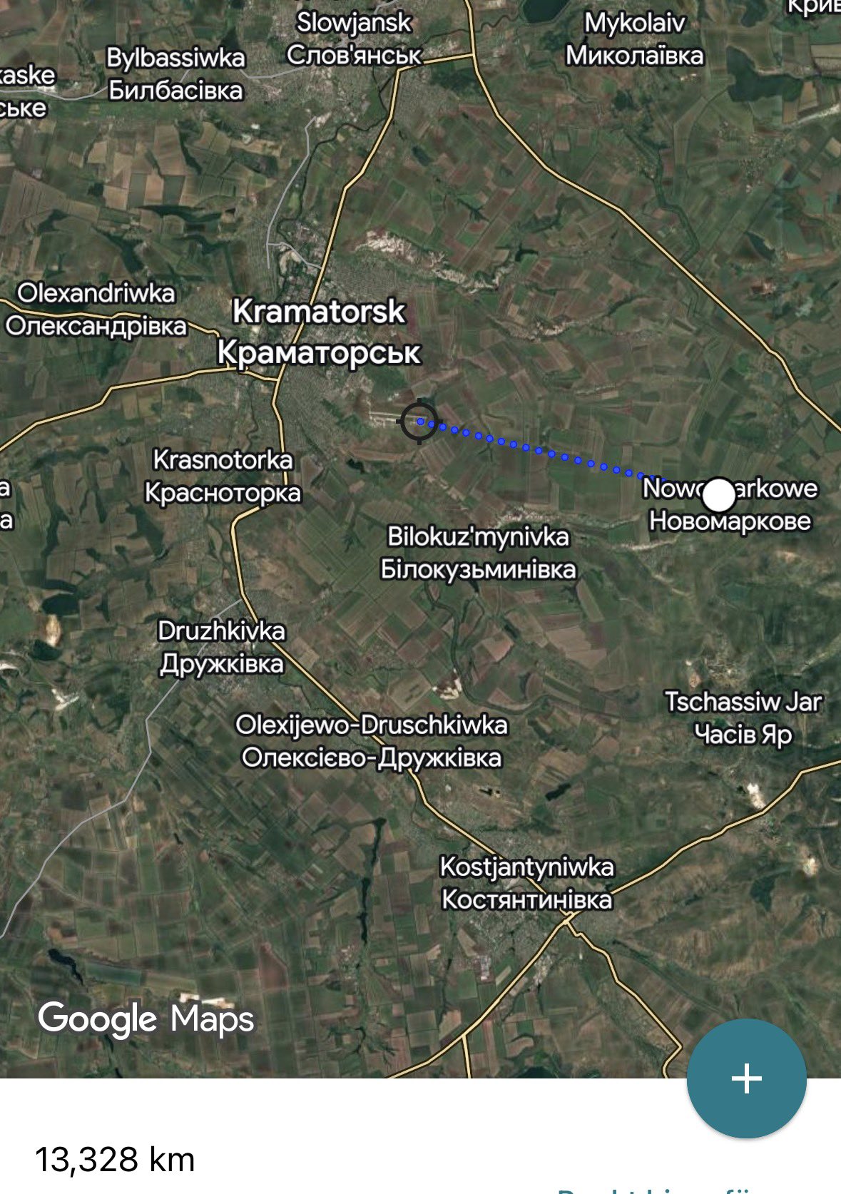 "Російські війська підняли свій прапор у Новомарковому - всього в 13 км на схід від аеропорту Краматорська і в 16 км на схід від самого міста. Це означає не тільки те, що 250 000 осіб опиняються в зоні оптичної досяжності FPV, а й те, що росіяни продовжують просуватися до". написав Ріпці, говорячи про Слов'янсько-Краматорську агломерацію, яка є останнім великим укріпрайоном ЗСУ у Донецькій області.