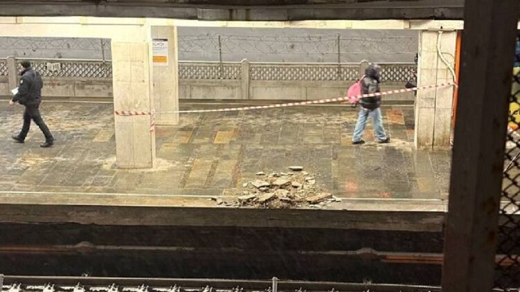 Що стосується "Чернігівської", то там конструкції стелі впали на край платформи. Аварійну ділянку оперативно обгородили стрічками.