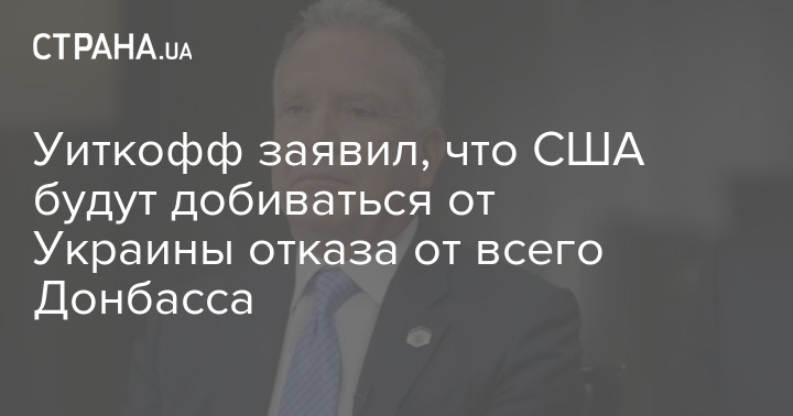 Спецпредставник президента США Стівен Уіткофф заявив, що Сполучені Штати домагатимуться від України відмови від усієї території Донбасу.